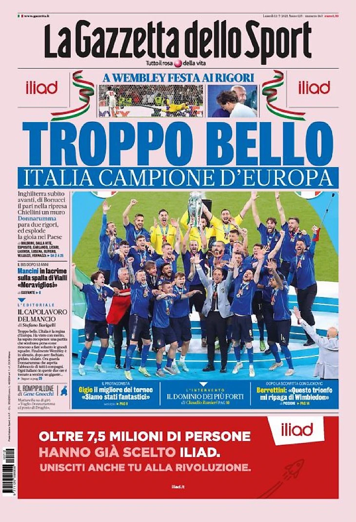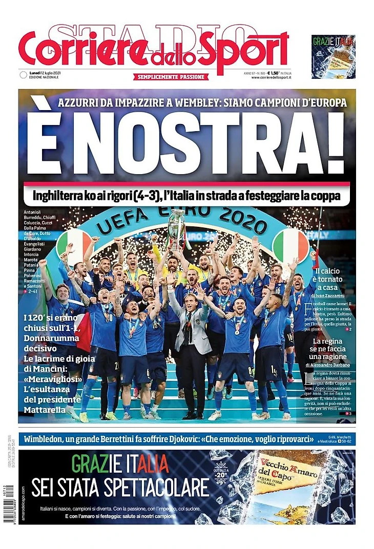 Заголовки от «Мы покорили «Уэмбли» до «Италия, ты королева».