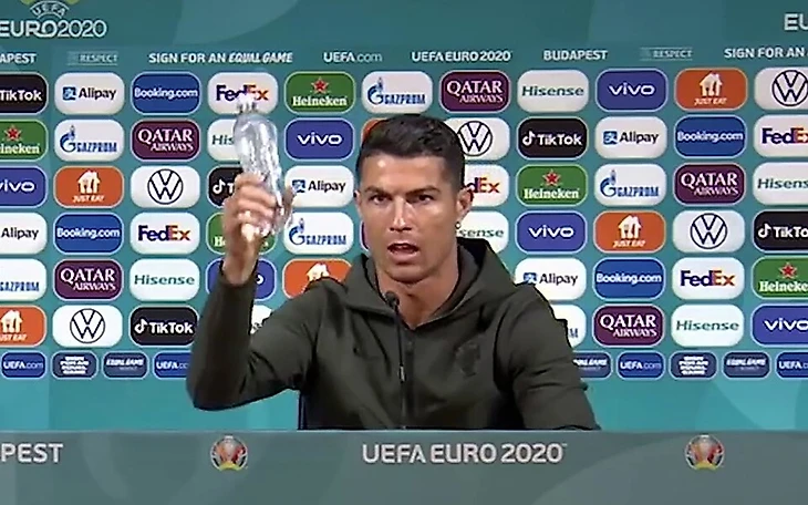 В итоге самым запоминающимся остался момент на пресс-конференции, когда Криштиану убрал две бутылки "Кока-Колы" и пропагандировал людей на здоровой образ жизни.