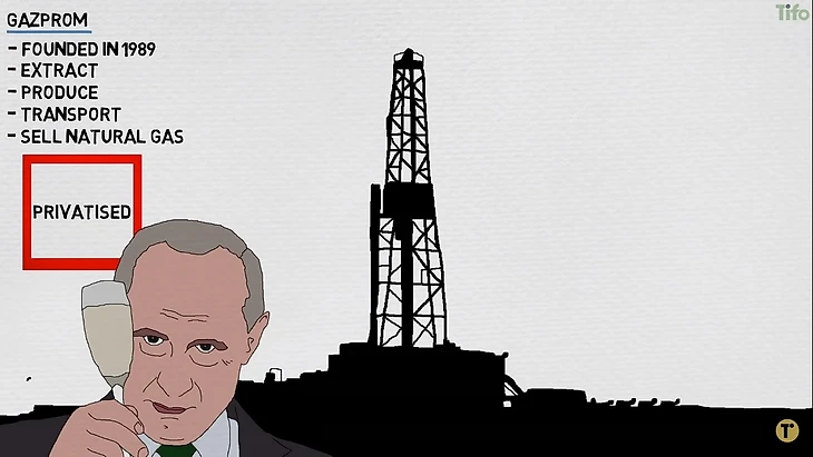 С 2005 г. мажоритарный пакет акций "Газпрома" составляет 50,2%. Крупнейшая по объемам добыча природного газа в мире, контролирующая 17% мировых запасов, и 72% в России, где это четвертая по величине газовая компания. В сентябре 2012 г. Брюссельский антимонопольный орган надзора за конкуренцией - Европейская комиссия, объявила об расследовании деятельности "Газпрома". Оно было основано на опасениях, что "Газпром" может злоупотреблять своим доминирующим положением на рынках добычи газа. В мае 2018 года Комиссия достигла соглашения, в котором компания пошла на ряд уступок, но не получила финансовых взысканий. Двумя месяцами ранее Михаил Путин, которого Кремль позже объявил дальним родственником Владимира, якобы сын двоюродного брата, был назначен заместителем председателя правления государственной компании.