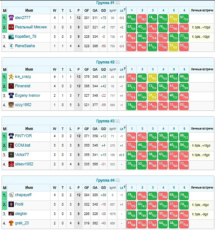 1/8 финала состояла из четырех мини матчей и принесла следующие результаты: