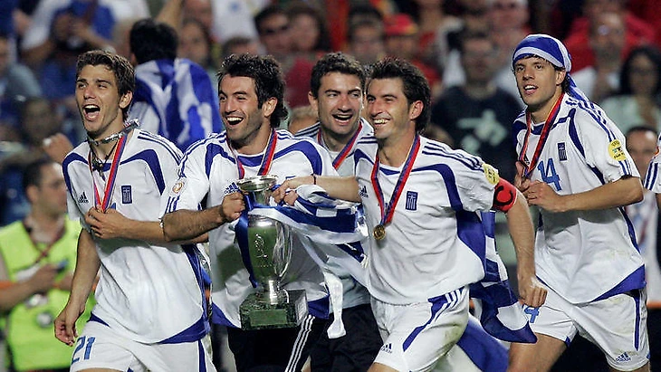 У греков 12 лет спустя в группе была сложная ситуация - хозяева турнира + Испания. Их болельщики надеялись лишь на достойный вылет. А тут победа в матче-открытии над Португалией. А ничья с испанцами позволила Греции выйти в плей-офф, даже несмотря на поражение от России. Они играли совсем не ярко - парковали “автобус”, а впереди делали ставку на стандарты. Все матчи выиграли с циничным счетом 1:0. Забить грекам не смогли ни Анри с Зиданом, ни Недвед, ни Криштиану с Фигу!