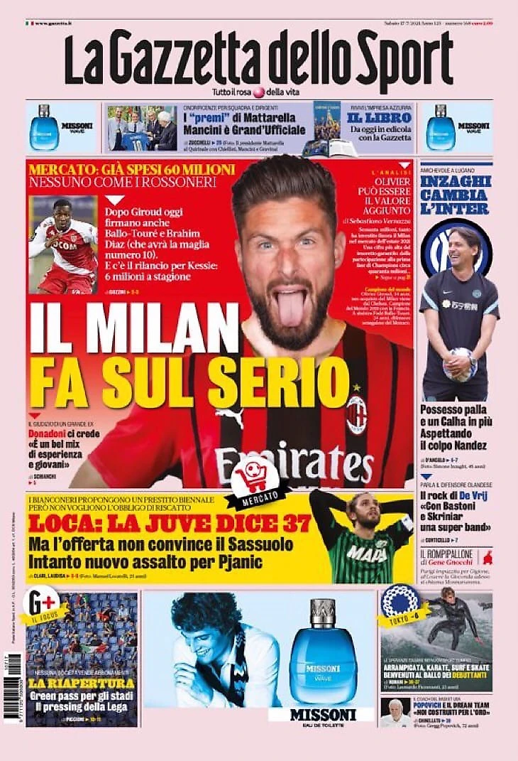 «Милан» серьёзен. Заголовки Gazzetta, TuttoSport и Corriere за 17 июля