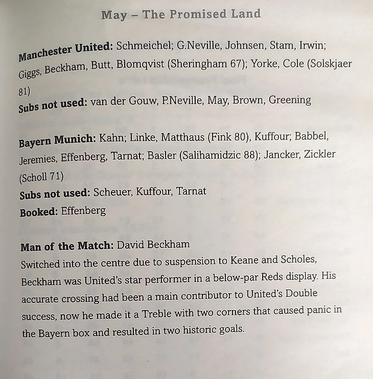 I could not get past this book. Each chapter is music to my ears! Threre are a lot of match details, information about team members and events off the field. The authors narrate about why Solskjær didn't join Spurs, how Beckham went through a rough patch after the World Cup, why Yorke became the life and soul of the party, etc.