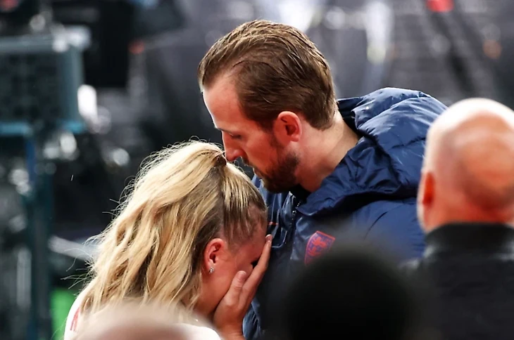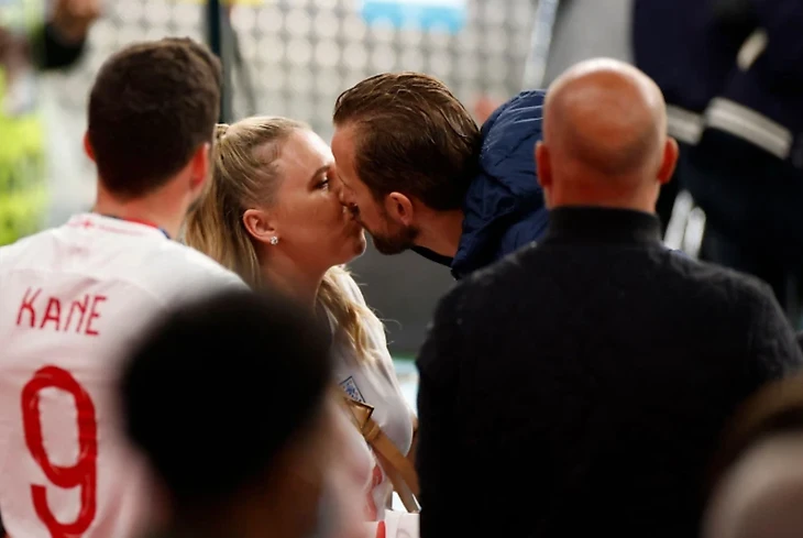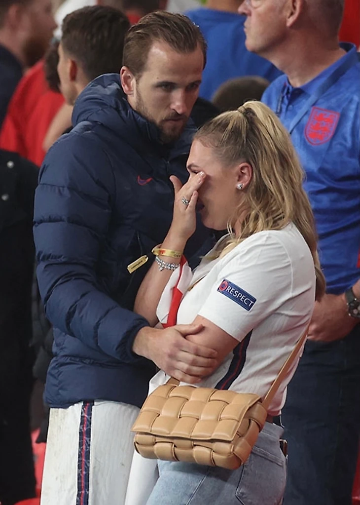 После матча капитан англичан Харри Кейн успокаивал супругу, которая плакала из-за поражения национальной команды