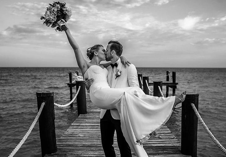 Свадебная церемония прошла на одном из экзотических островов. Точное место неизвестно. Футболист поделился фотографиями со свадьбы в своем профиле в Instagram. Фотографии он подписал так: «Наконец-то женился на лучшей подруге! Я люблю тебя, Кэти Гудлэнд».