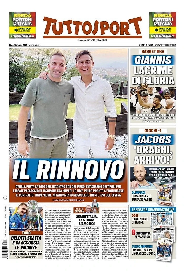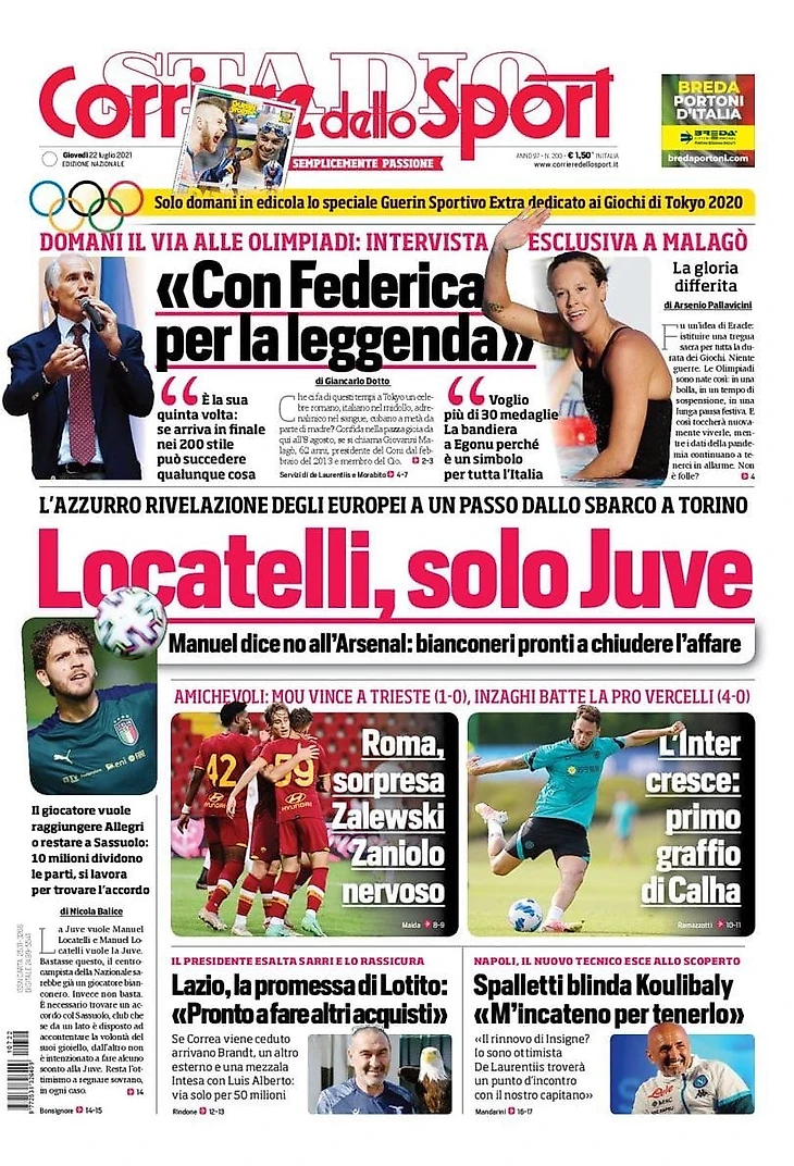 Локателли, только «Юве». Заголовки Gazzetta, TuttoSport и Corriere за 22 июля
