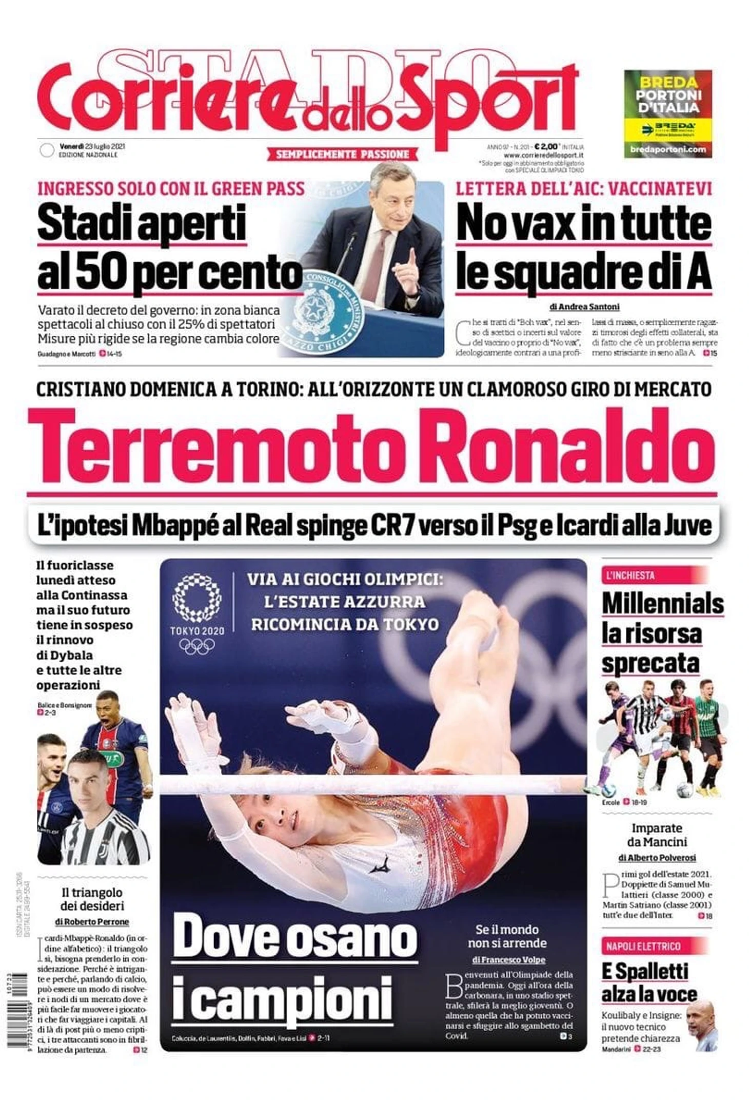 Ситуация с возможным уходом Роналду из «Юве», закон о допуске зрителей на стадионы, а также открытие Олимпиады – в утреннем обзоре заголовков итальянских спортивных изданий в блоге «В гостях у Кальчо».