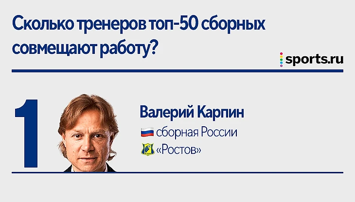 Сколько тренеров из топ-50 сборных мира совмещают работу? Ответ в одной картинке
