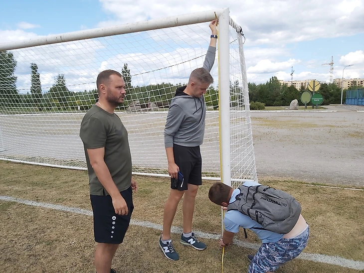 Пока мы бродили по полю и обсуждали реалии областного футбола, выяснилось следующее - перекладина одних из ворот, как казалось, была явно ниже привычного положения. Пришлось даже замерять - так и вышло.
