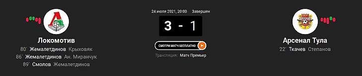 "Локомотив" на своем поле переиграл тульский "Арсенал", все голы "железнодорожники" забили в концовке встречи. Дубль и результативная передача на счету Рифата Жемалетдинова. На ход матча повлияло удаление: защитник гостей Артем Сокол получил две желтые карточки и досрочно покинул поле.