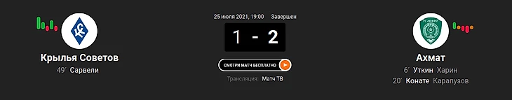 Новичок премьер-Лиги этого сезона дома уступил "Ахмату". "Крылья" забили в самом начале второго тайма, но сравнять счет команде Игоря Осинькина не удалось, хотя для этого были возможности. На 92-й минуте удар Ивана Сергеева пришелся в штангу.