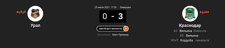 5) "Урал" - "Краснодар" (0:3)