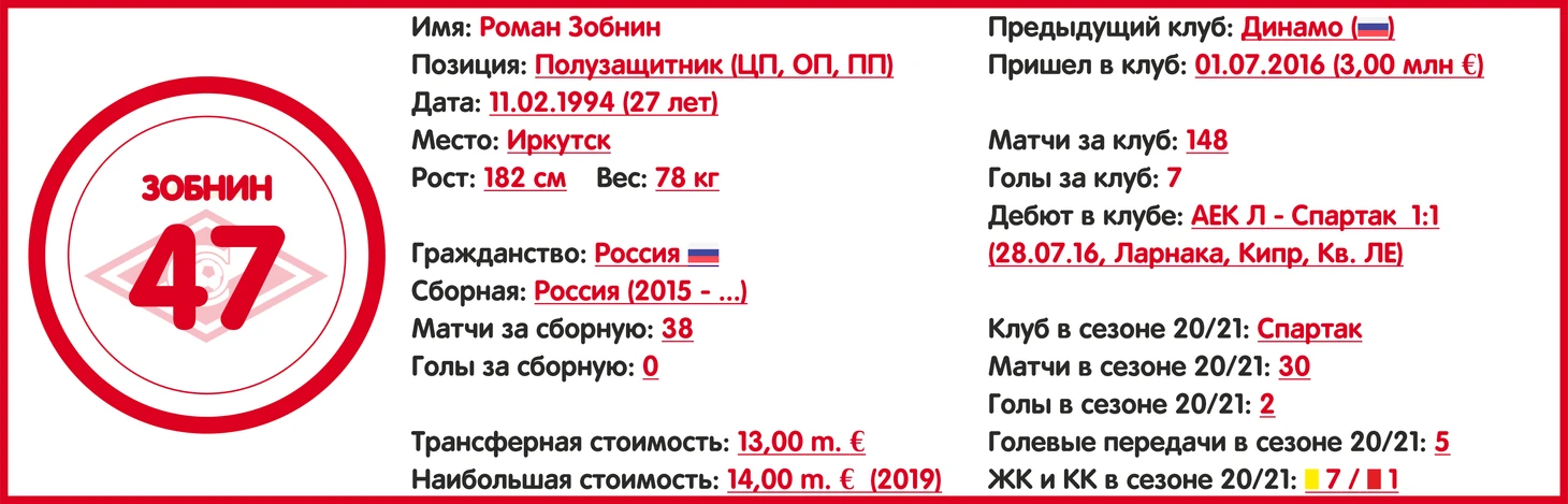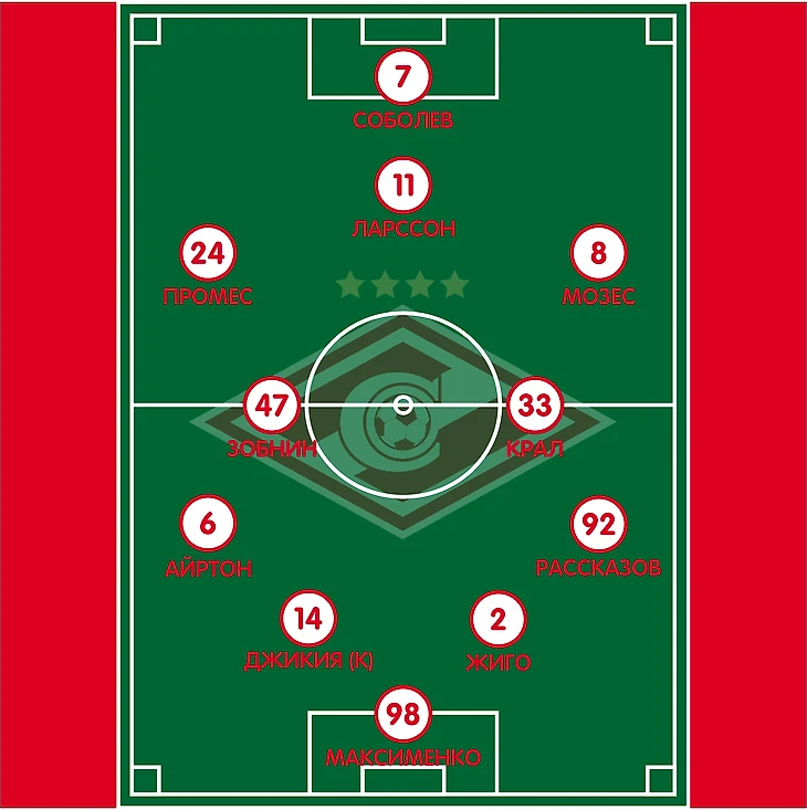 • В центре поля практически безоговорочно гарантированно место в стартовом составе игроку сборной России Роману Зобнину, сыгравшему во всех 3-х матчах в составе сборной России на недавнем Евро-2020.
