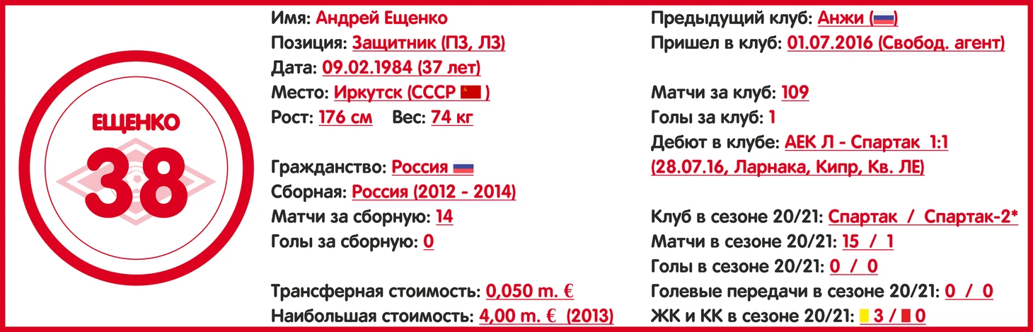 • Самым проблемным местом в составе «Спартака» выглядела позиция правого защитника, куда очень долго и искали усиление. В итоге игрока на эту позицию пока не нашли, так что решились сейчас довериться вернувшемуся из аренды Николаю Рассказову, проведшему прошлый сезон в тульском «Арсенале» (17 матчей за туляков). На замену ему при этом есть и опытнейший Андрей Ещенко, которому в феврале этого года исполнилось уже 37 лет.