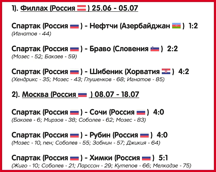 • Команда обладает достаточно сильным и сыгранным составом, плюс есть еще варианты и время для точечных усилений (особенно на позиции правого защитника), так что на бумаге пока что «Спартак» выглядит той командой, которая точно будет бороться за медали, но как будет на деле узнаем лишь по итогу сезона.