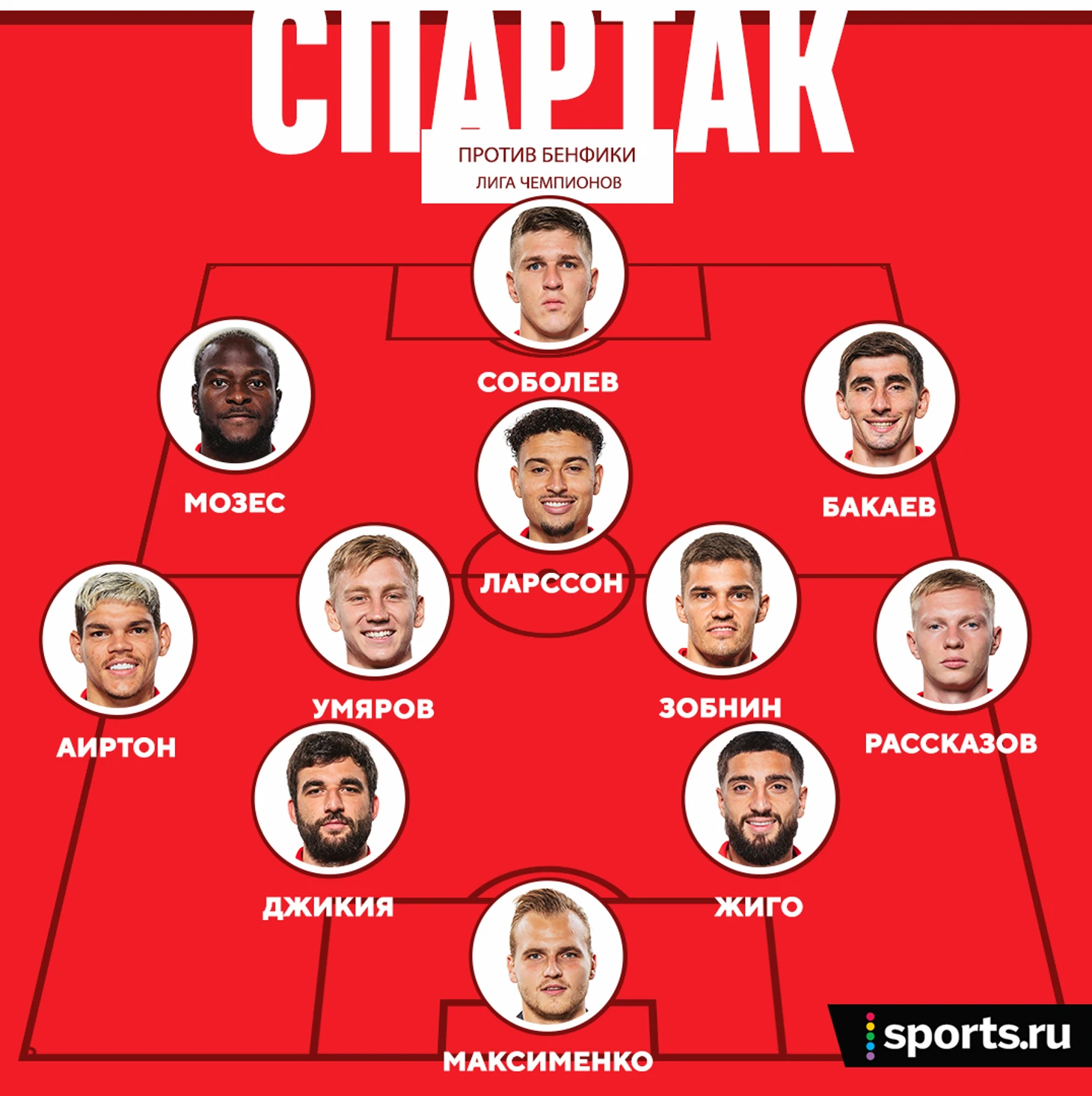 Мозес, Бакаев и Умяров в старте. Ориентировочный состав «Спартака» на матч с «Бенфикой»