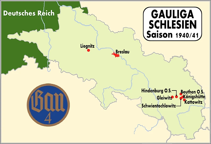 Уже в следующем сезоне лига была разделена на две отдельные группы по географическому принципу - Гаулига Нижняя Силезия (Gauliga Niederschlesien) и Гаулига Верхняя Силезия (Gauliga Oberschlesien). «Германия» оказалась во второй лиге. В первом же сезоне 1941/1942 «Германия» стала чемпионом лиги. Успешно выступала команда и в кубке Германии. В сезоне 1941/1942 «Германия» дошла до 1/8 финала, где проиграла будущему финалисту и трёхкратному чемпиону Гаулиги Дунай-Альпы венскому «Фёрсту».