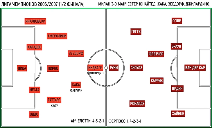 «Я довольно сильно изменился с тех пор, как приехал в Милан, и я думаю, что стал более разносторонним футболистом, – говорил Кафу. – В «Роме» я играл в полузащите, а иногда и почти в атаке. В «Милане» я правый защитник, и мне пришлось улучшить свою защиту. Только если я буду хорошо защищаться, я могу думать об атаке». Красота футбола и стамбульского финала в частности заключается еще и в том, что можно выиграть его с парой фланговых защитников Финнан-Джими Траоре, когда у соперника на этих позициях Мальдини и Кафу.