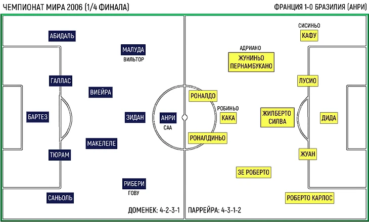 Кстати, пара атакующих флангов – неотъемлемая черта и чемпионов мира последних десятилетий: от Бранко и Жоржиньо (1994) до Роберто Карлоса и Кафу (2002), от Лизаразю и Тюрама (1998) до Дзамбротты и Гроссо (2006).