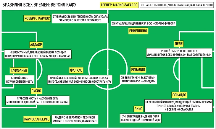 Бразилия всех времен от Кафу (с его же краткими пояснениями):