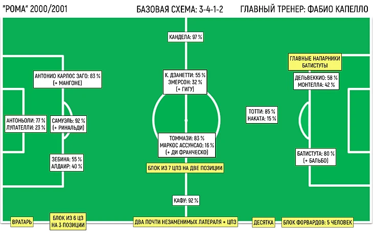 Вторая подобная мелочь – особые связи с отдельными партнерами. Например, у Тотти или Кака было доскональное знание манеры: не отдавать на Кафу сразу, а выжидать, когда тот выйдет на пик скорости и только тогда пасовать. Ты покупаешь ему преимущество в динамике своей паузой. Франческо в чемпионский сезон (3-4-1-2) вообще царил, чередуя игру через Кафу и Кандела.