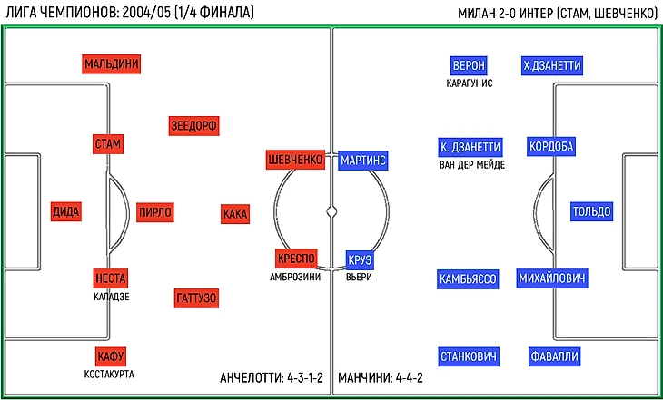 Против «Милана» Анчелотти за несколько месяцев до перехода в «Милан» Анчелотти:
