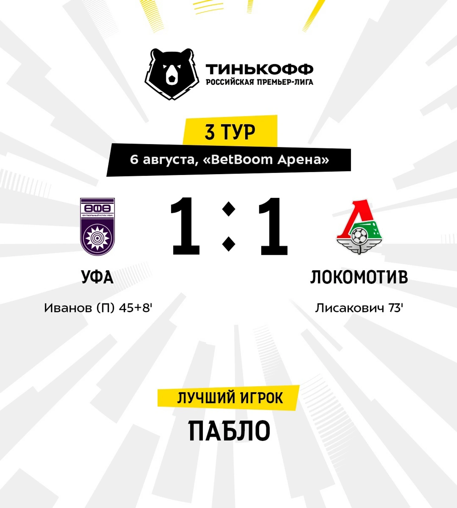 Матч Уфы с Локомотивом мы пропустили. Команды сыграли в ничью 1:1 и в ближайшее время, вы увидите разбор этой встречи на нашем блоге.