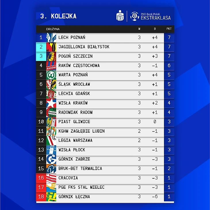 Вместо девяти матчей в 3-ем туре прошло восемь, поскольку «Легия» попросила лигу перенести свой матч против «Заглембе», чтобы лучше подготовиться к ответному матчу с загребским «Динамо». Но и в этих восьми встречах было на что посмотреть: во Вроцлаве матч дружбы с изобилием голевых моментов завершился ничьей, в Забже впервые с первых минут появился Подольски, «Ракув», оставшись в меньшинстве, показал характер, а «Варта» в великолепном стиле доказала, что она такая одна в Польше.