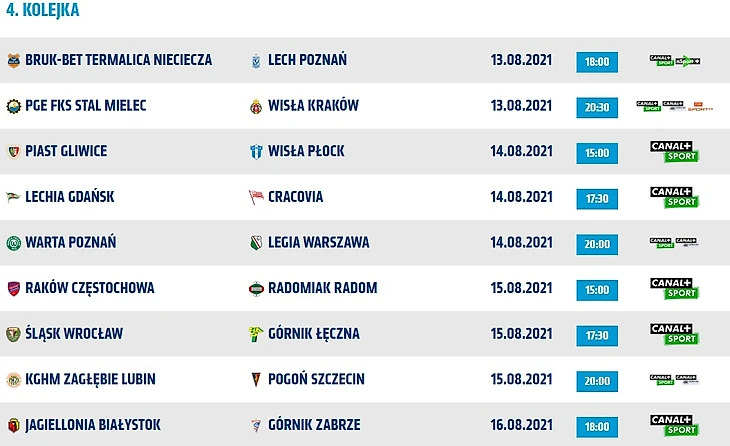 * Матч 3-го тура Экстракласы «Легия» - «Заглембе» перенесён на 15-ое декабря по просьбе команды из Варшавы