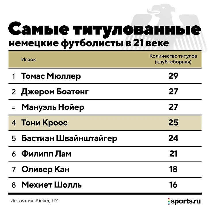 Кроос выиграл 25 титулов, но в Германии его игру критикуют Маттеус и Хенесс. Недавно Тони попрощался со сборной (в 31!)