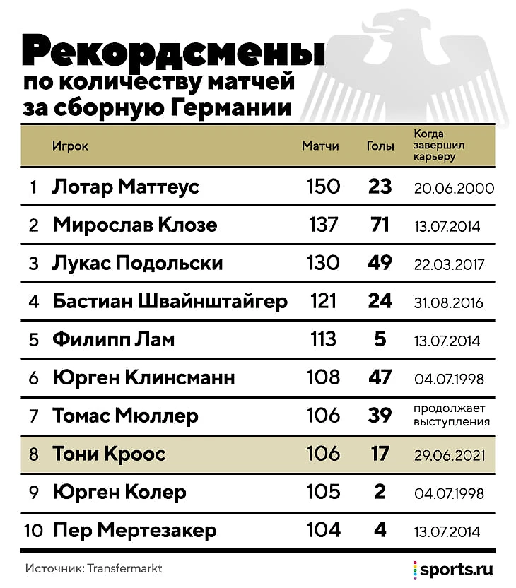 «Я обещал жене, что закончу в 2014-м, если стану чемпионом мира, – признавался Кроос в подкасте Eine Halbzeit mit накануне Евро. – Мысли об уходе были и в 2018-м, но тогда я передумал. Мне захотелось выиграть еще один трофей для национальной команды».