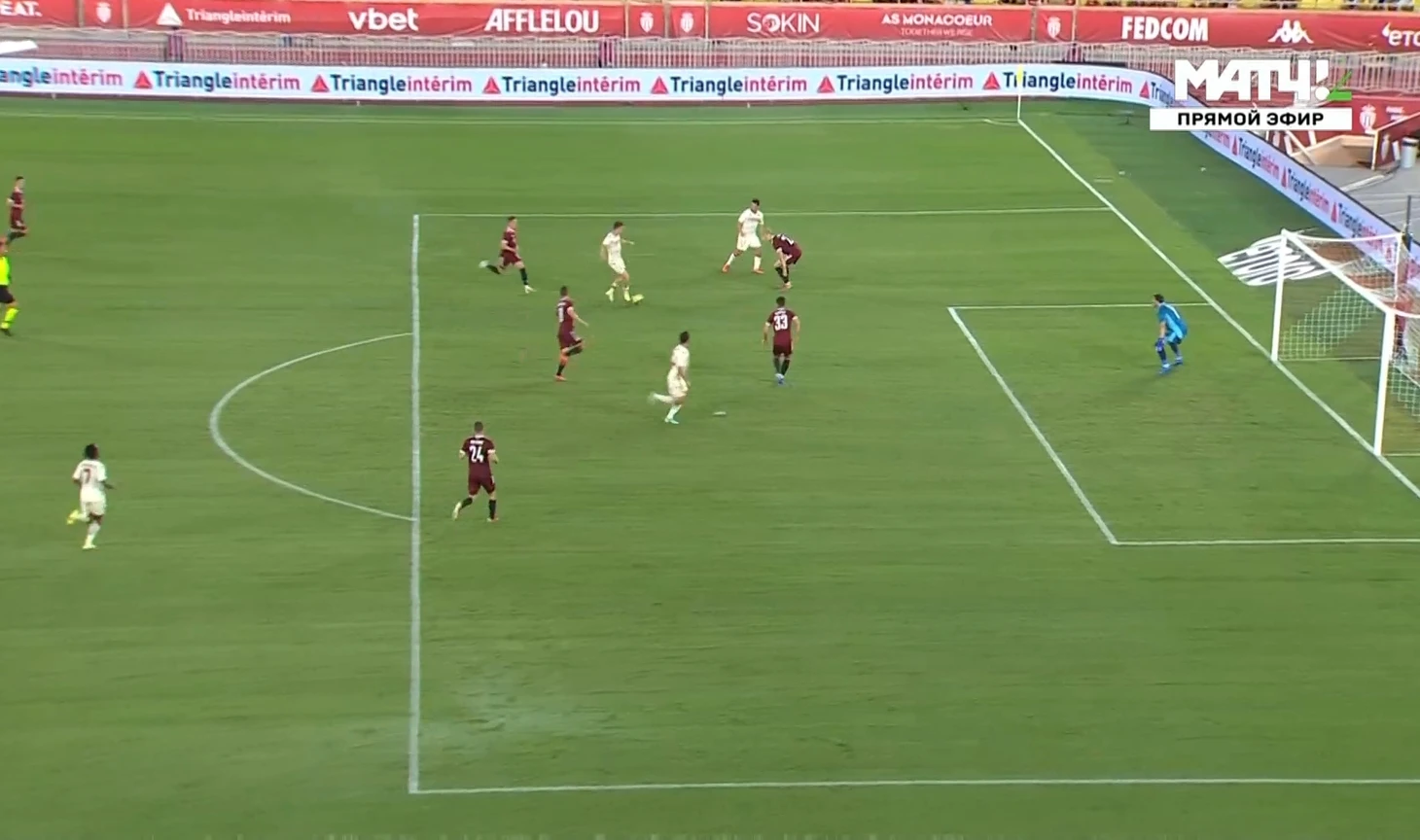 В ответном матче Саша вышел в основе (как и в первом). На 56-й минуте случился перехват в центре поля, «Монако» убежал в быструю атаку, к которой подключился Головин. Бен-Йеддер увидел набегающего россиянина и отдал.