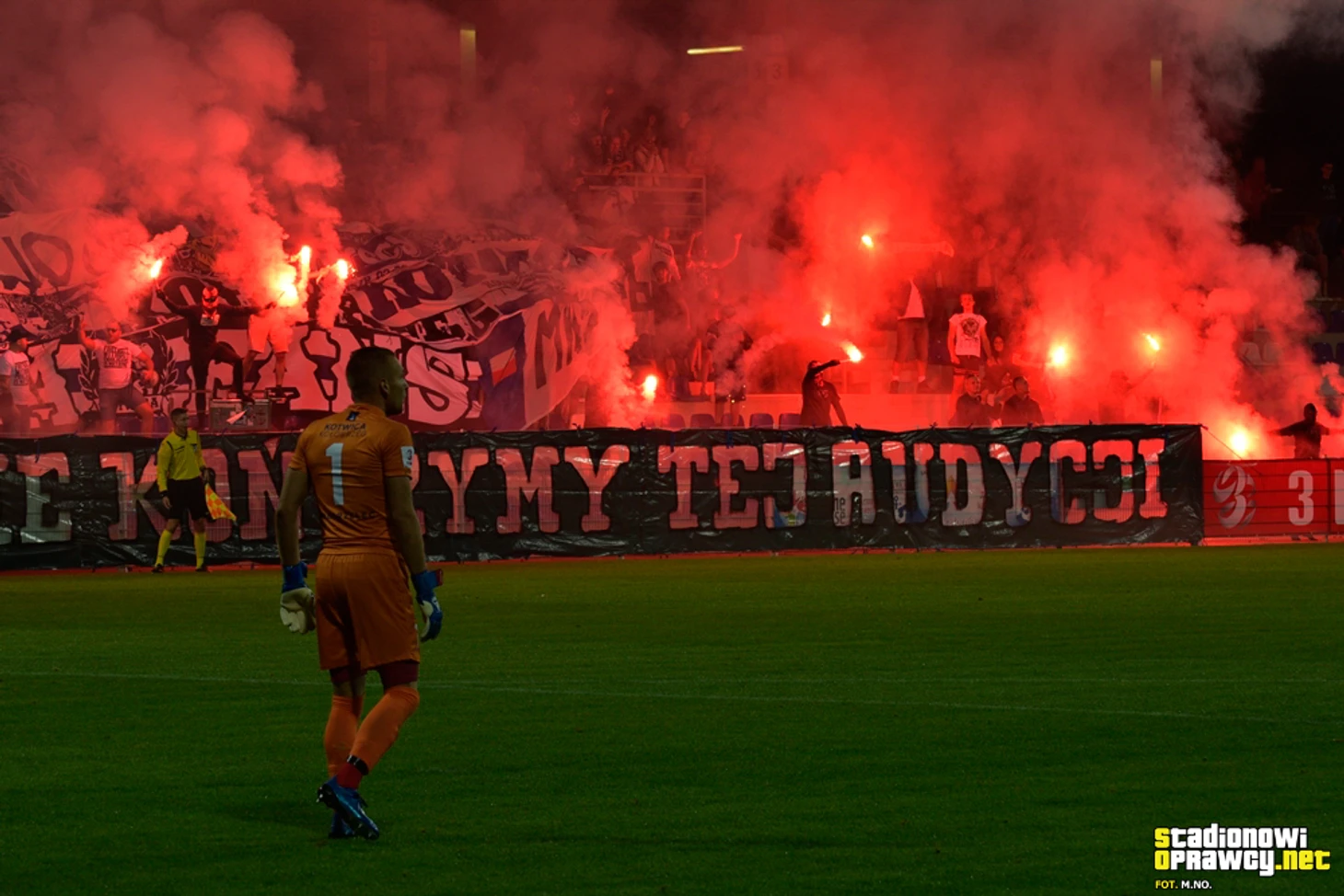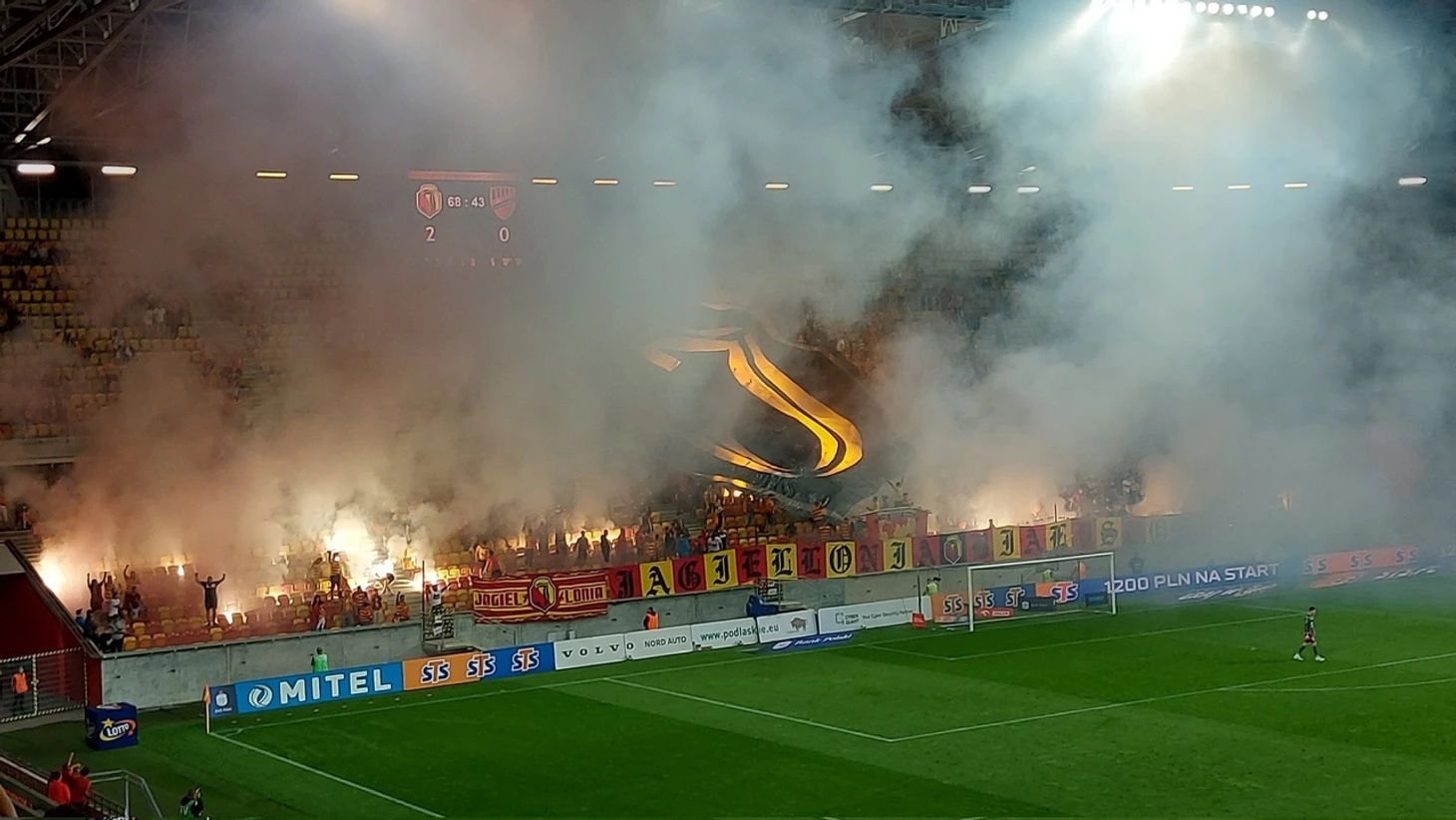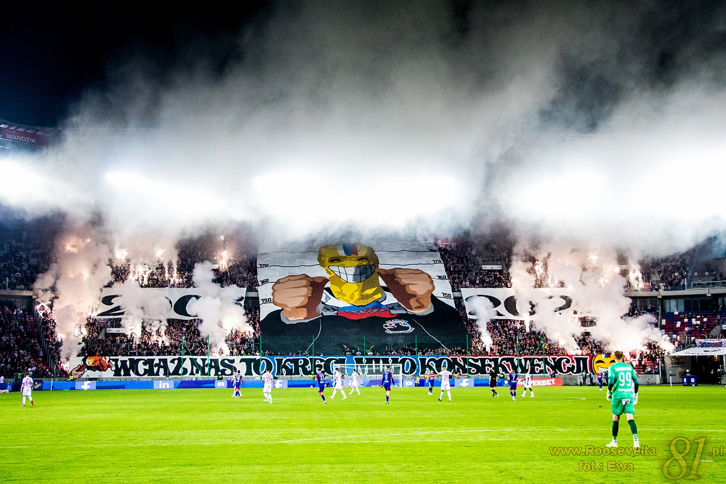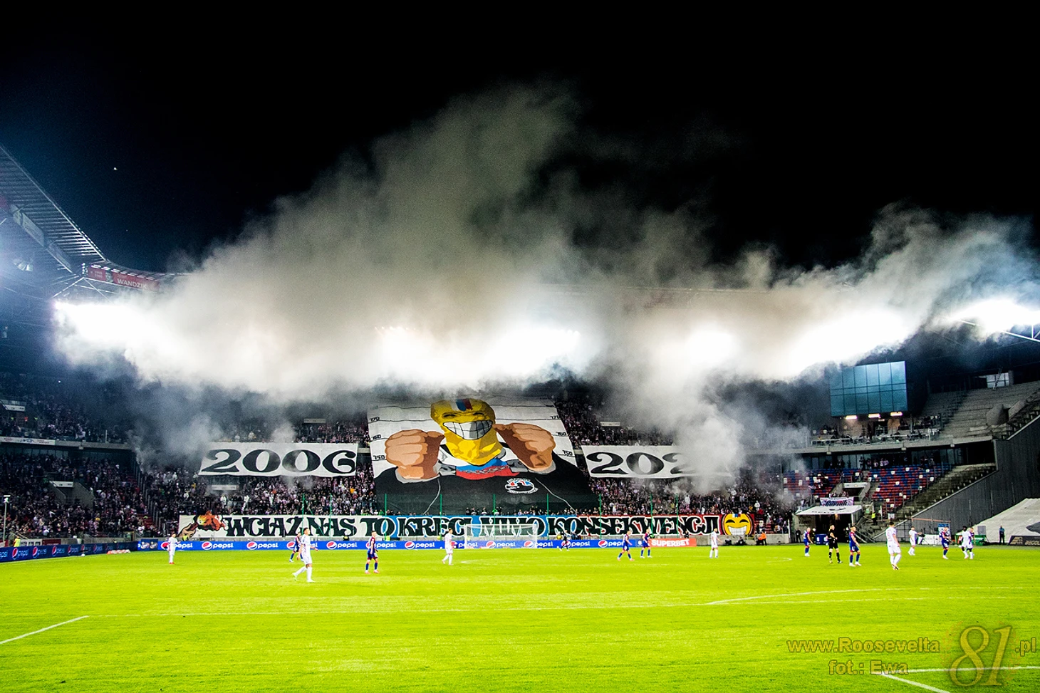 «Ягеллония» на матч с «Ракувом» подготовили незамысловатый перформанс, состоящий из секторувки "J" и пиротехники. Арбитр был вынужден прервать матч из-за слабой видимости на поле.