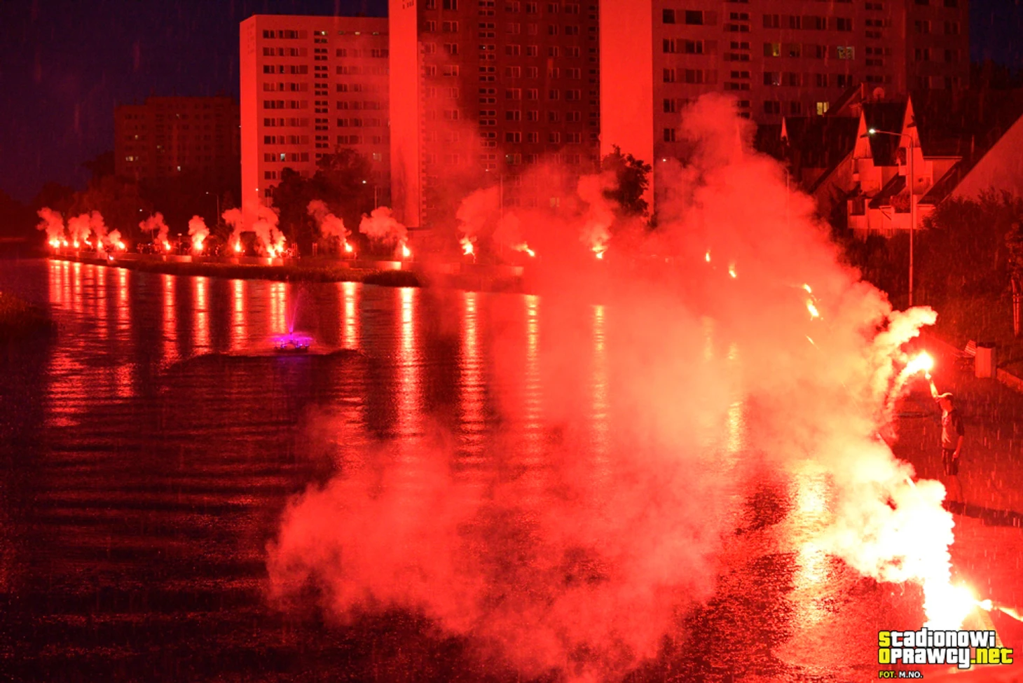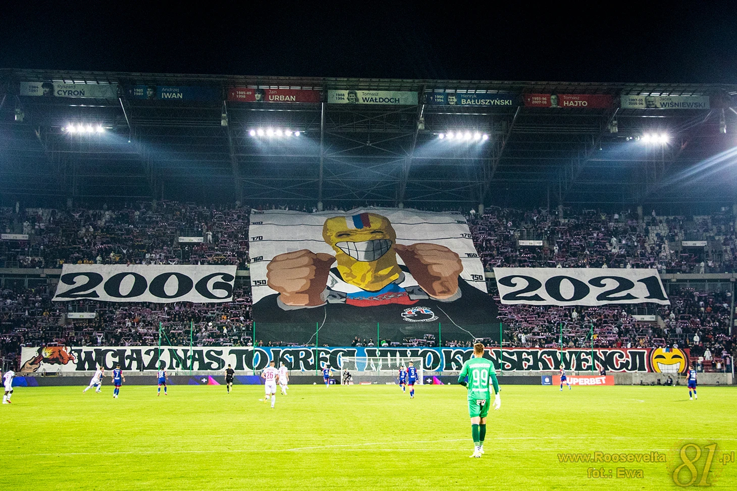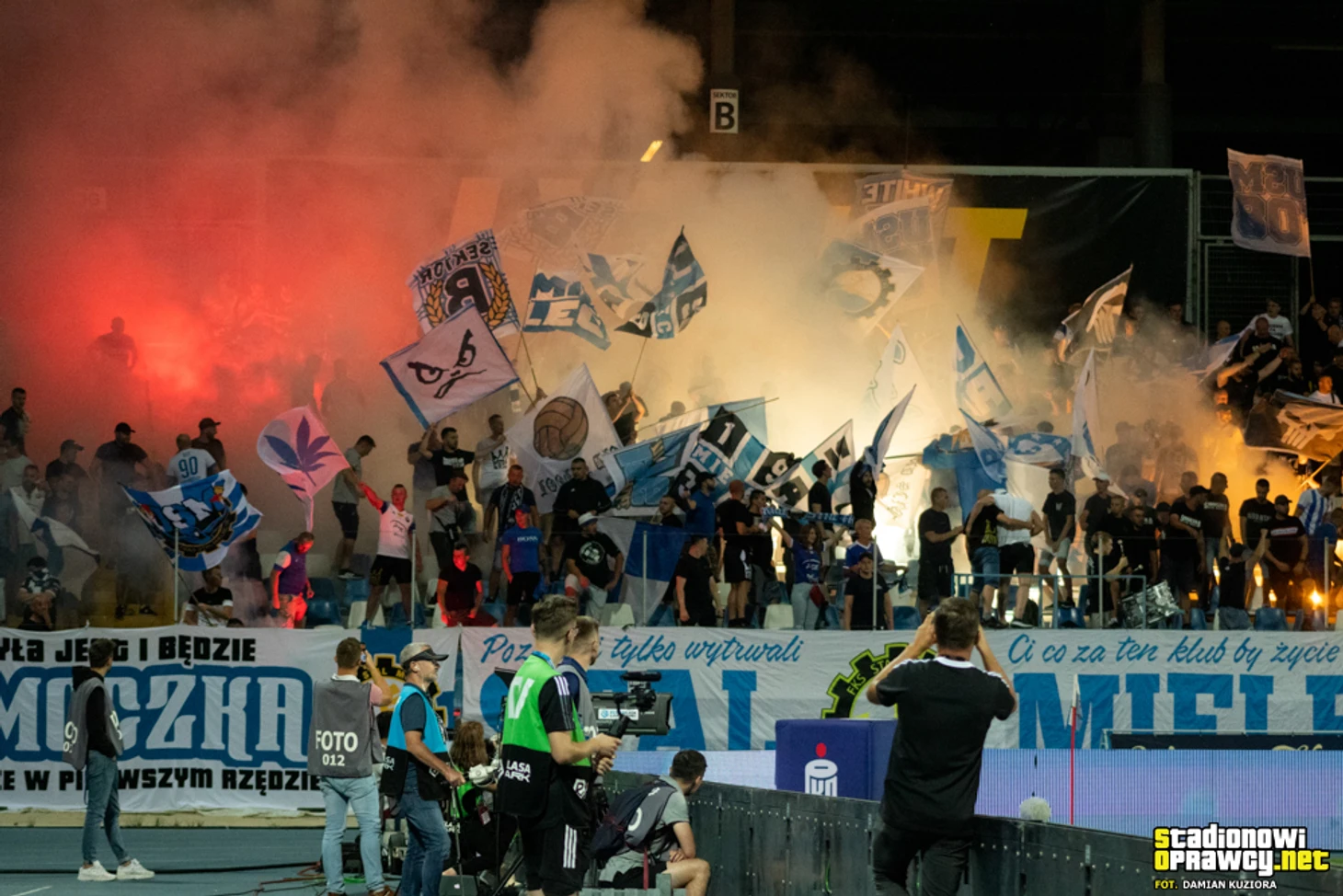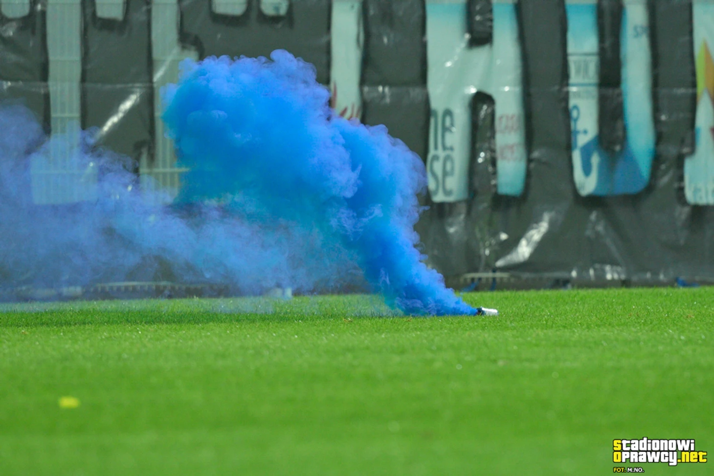 «Ягеллония» на матч с «Ракувом» подготовили незамысловатый перформанс, состоящий из секторувки "J" и пиротехники. Арбитр был вынужден прервать матч из-за слабой видимости на поле.