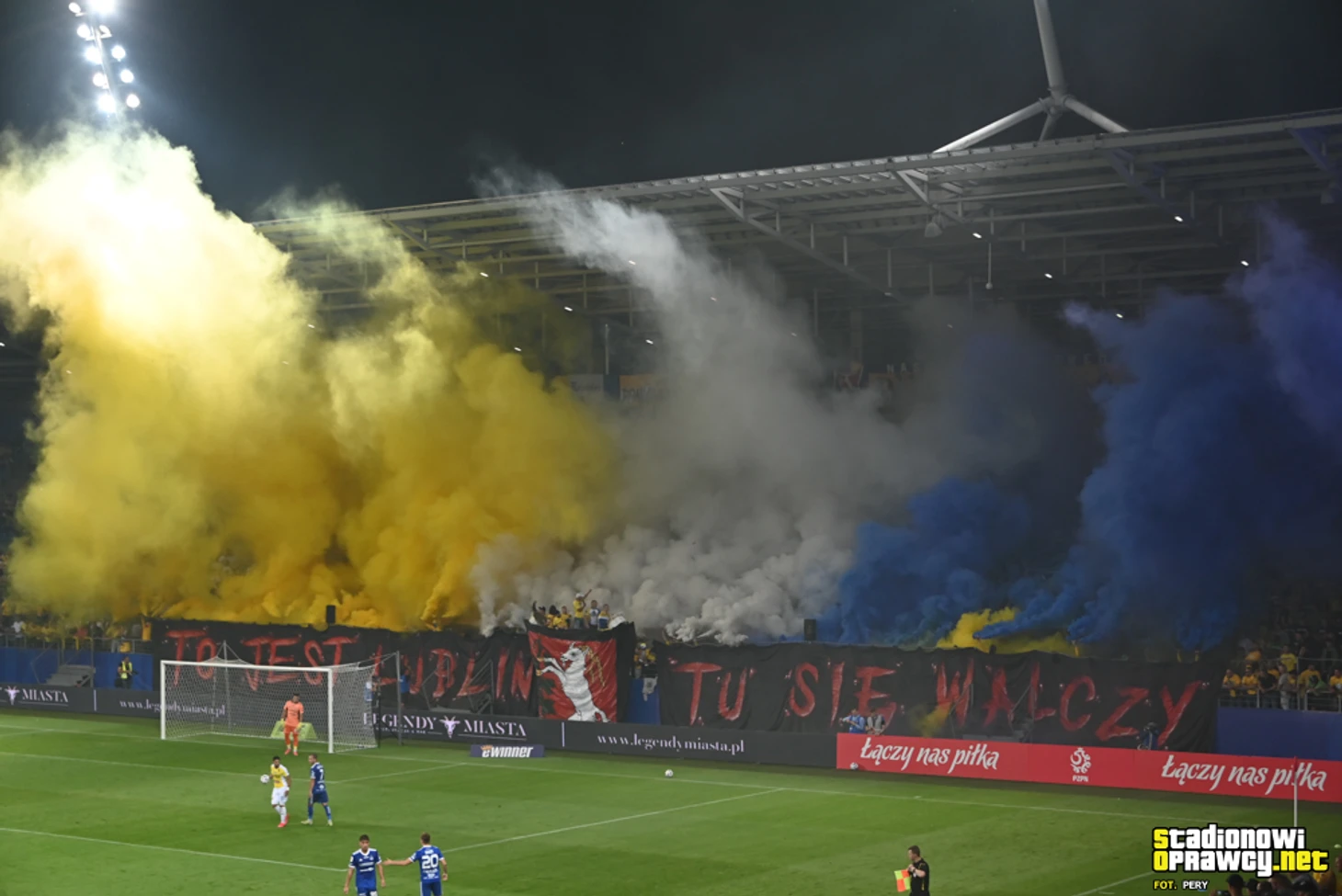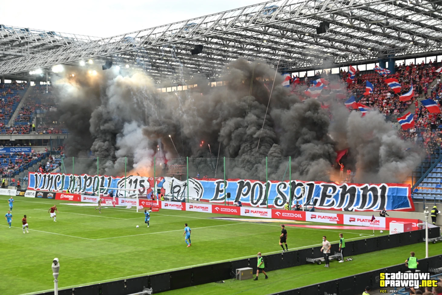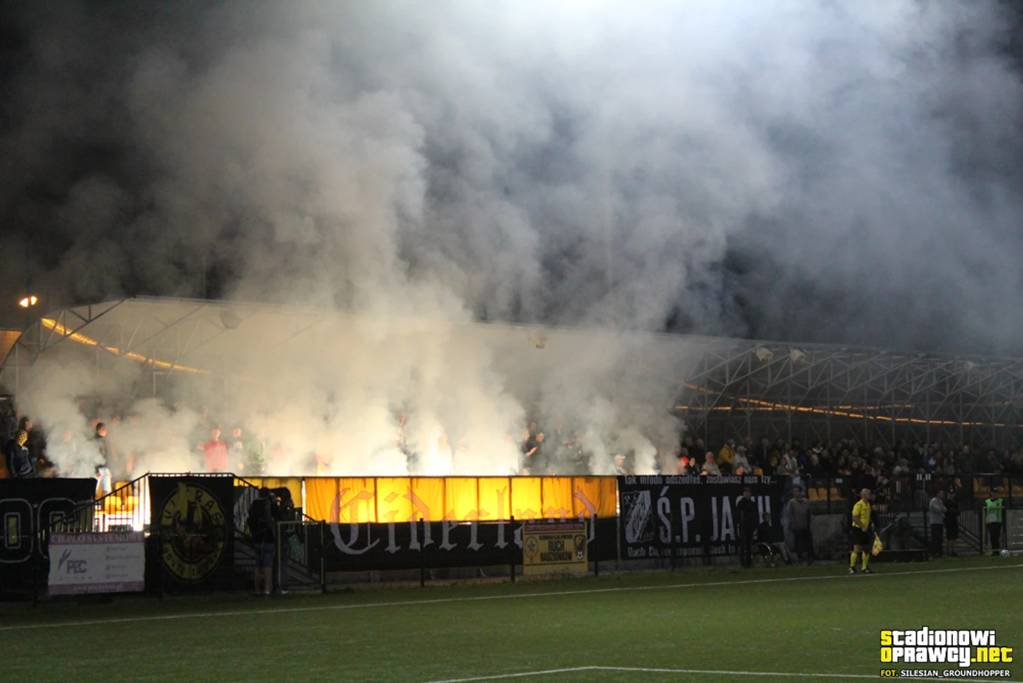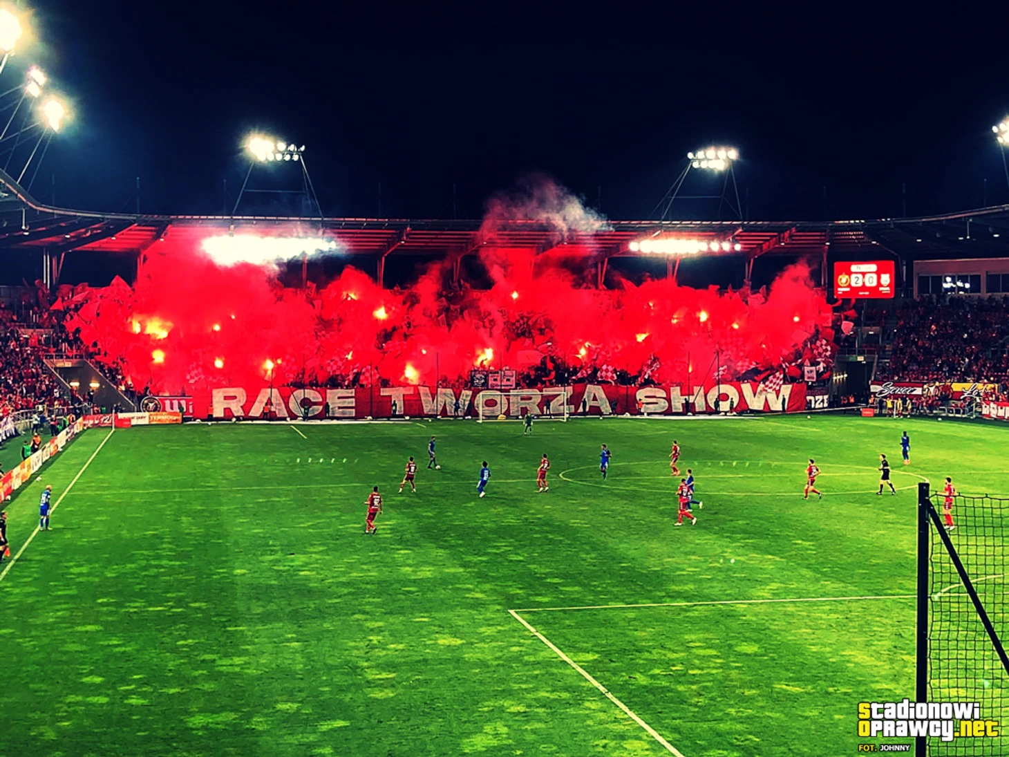 «Ягеллония» на матч с «Ракувом» подготовили незамысловатый перформанс, состоящий из секторувки "J" и пиротехники. Арбитр был вынужден прервать матч из-за слабой видимости на поле.