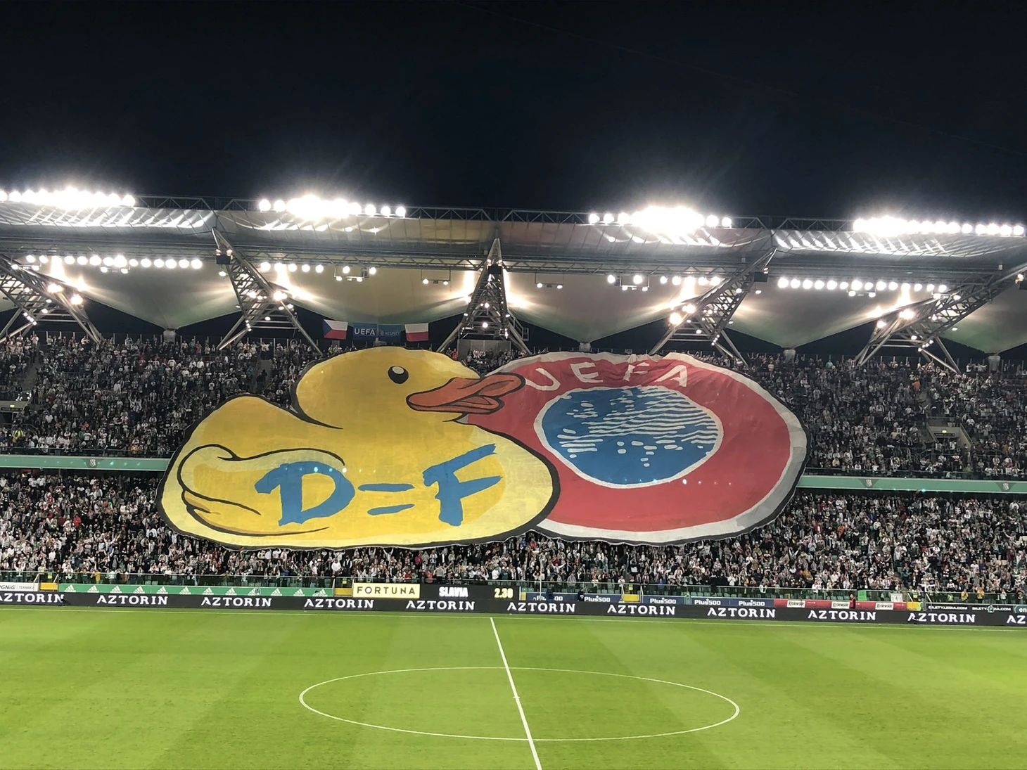 26-го августа «Легия» одержала победу над пражской «Славией» и завоевала путёвку в групповой этап Лиги Европы. Фанаты варшавян вынуждены были переместиться на противоположную трибуну из-за бана от УЕФА. Хозяева еще раз напомнили своё отношение к УЕФА великолепным ребусом, появившимся на центральной трибуне под скандирование "*uck UEFA".