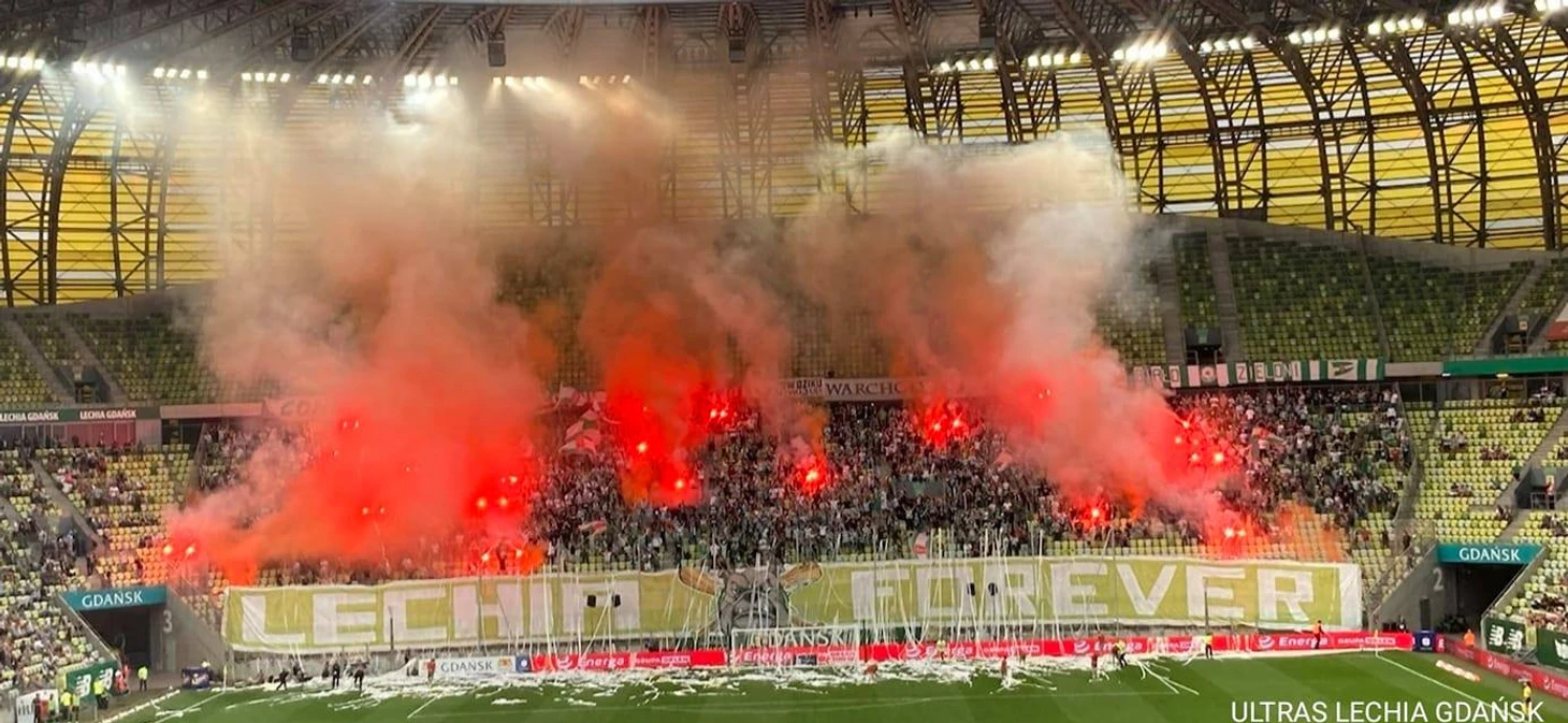 Гданьская «Лехия» на втором домашнем матче подряд демонстрирует оправу. На этот раз перформанс с простым посылом «Лехия навсегда» был выполнен в олдскульном стиле.