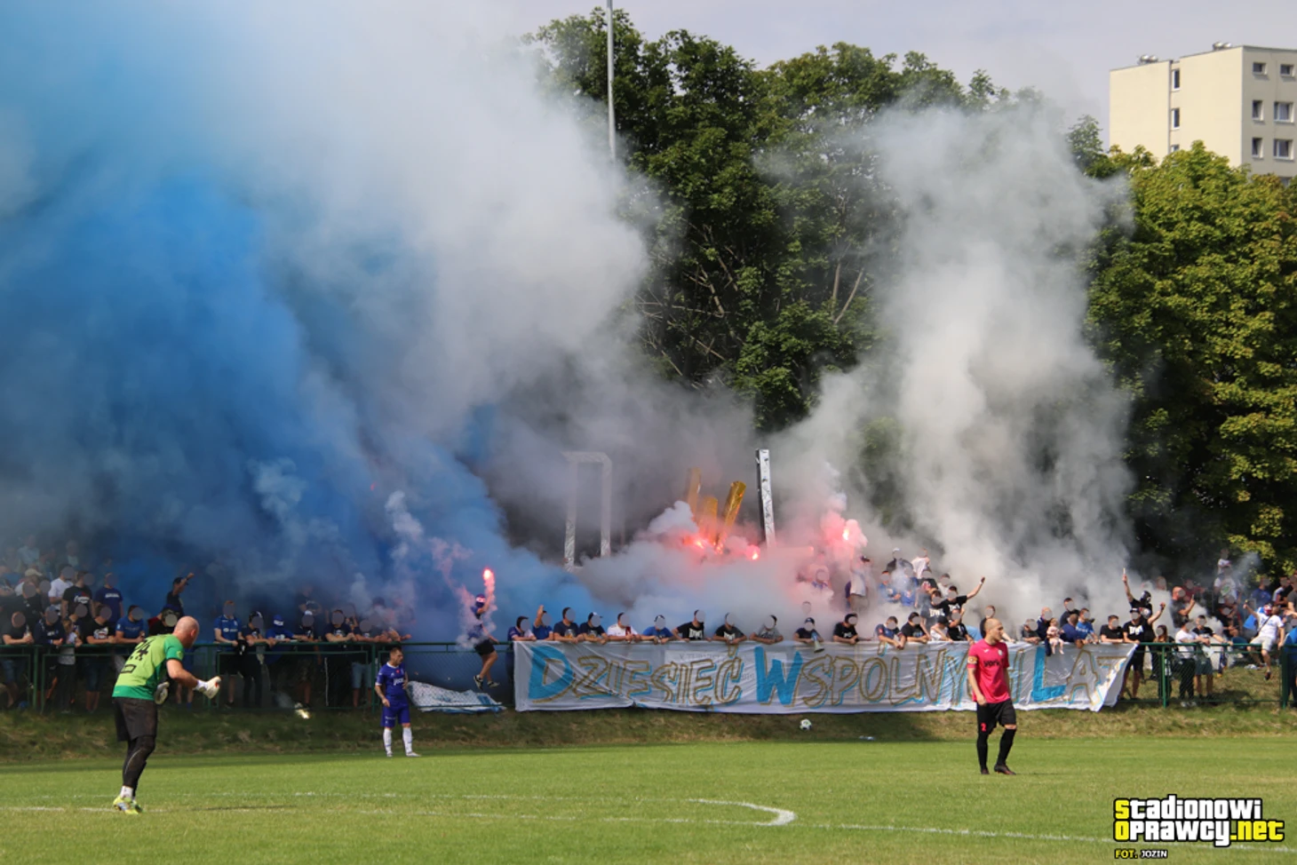 В рамках пятого дивизиона встретились некогда представители элиты польского футбола «Рух» Радзёнкув и «Шомберки». Фанаты хозяев отметились небольшим пирошоу.