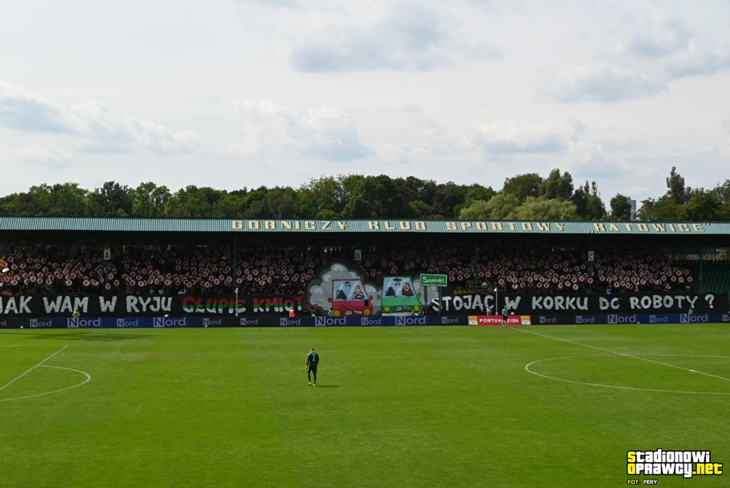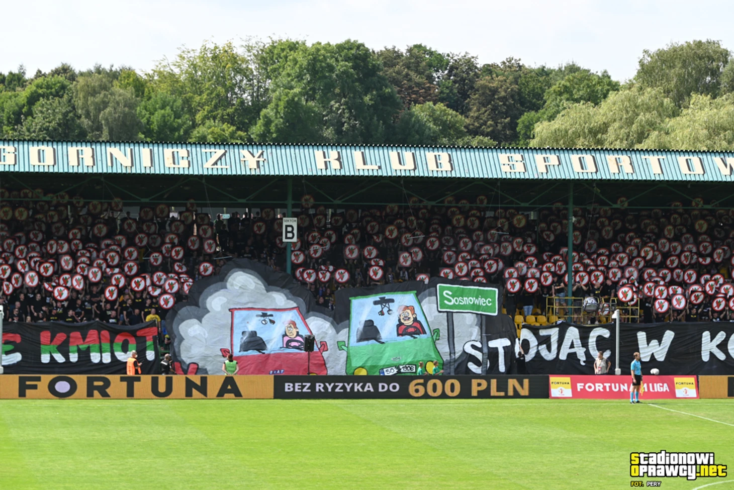 22-го августа в Катовице прошлом дерби между местным «ГКС» и сосновецким «Заглембе». Гостей на матч не пустили, а вот хозяева заполнили свой фан-сектор и подготовили оправу, текст которой сложно передать, но смысл понятен - катовичане пытались уколоть соперника по теме пробок, которые постоянно образуются на трассе из Сосновца в Катовице.