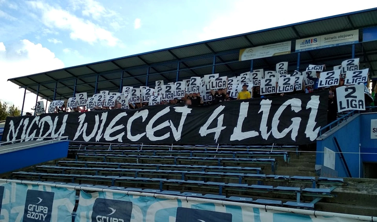 «Никогда больше 4-ой лиги» - перформанс фанатов тарнувской «Унии» с понятным посылом в адрес своих футболистов на матче с резервной командой «Краковии» на матче III-ей лиги.