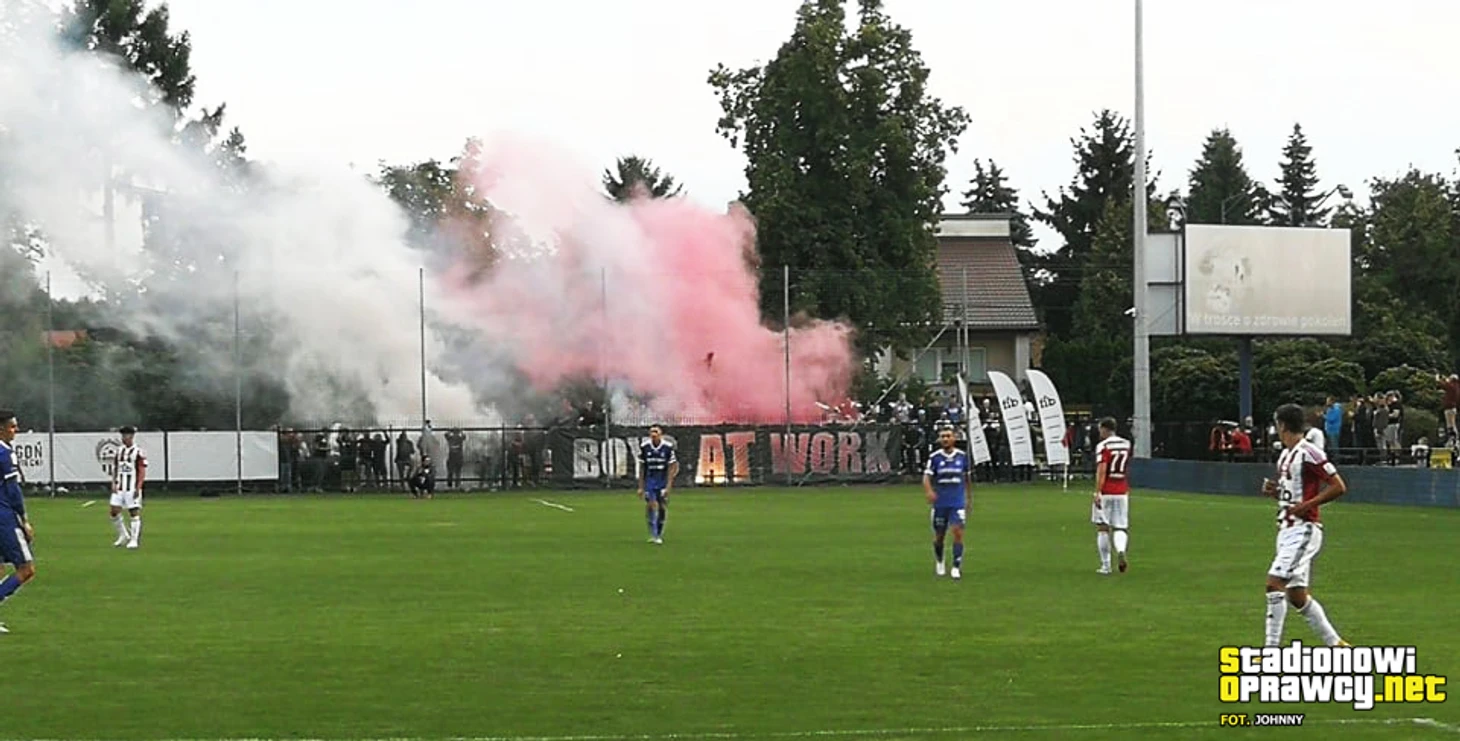 Фанаты «Полонии» из Пшемысля немного пожгли на матче со «Сталью» Санок на матче пятого дивизиона. «Полония», кстати, является одним из старейших клубов страны из ныне существующих.