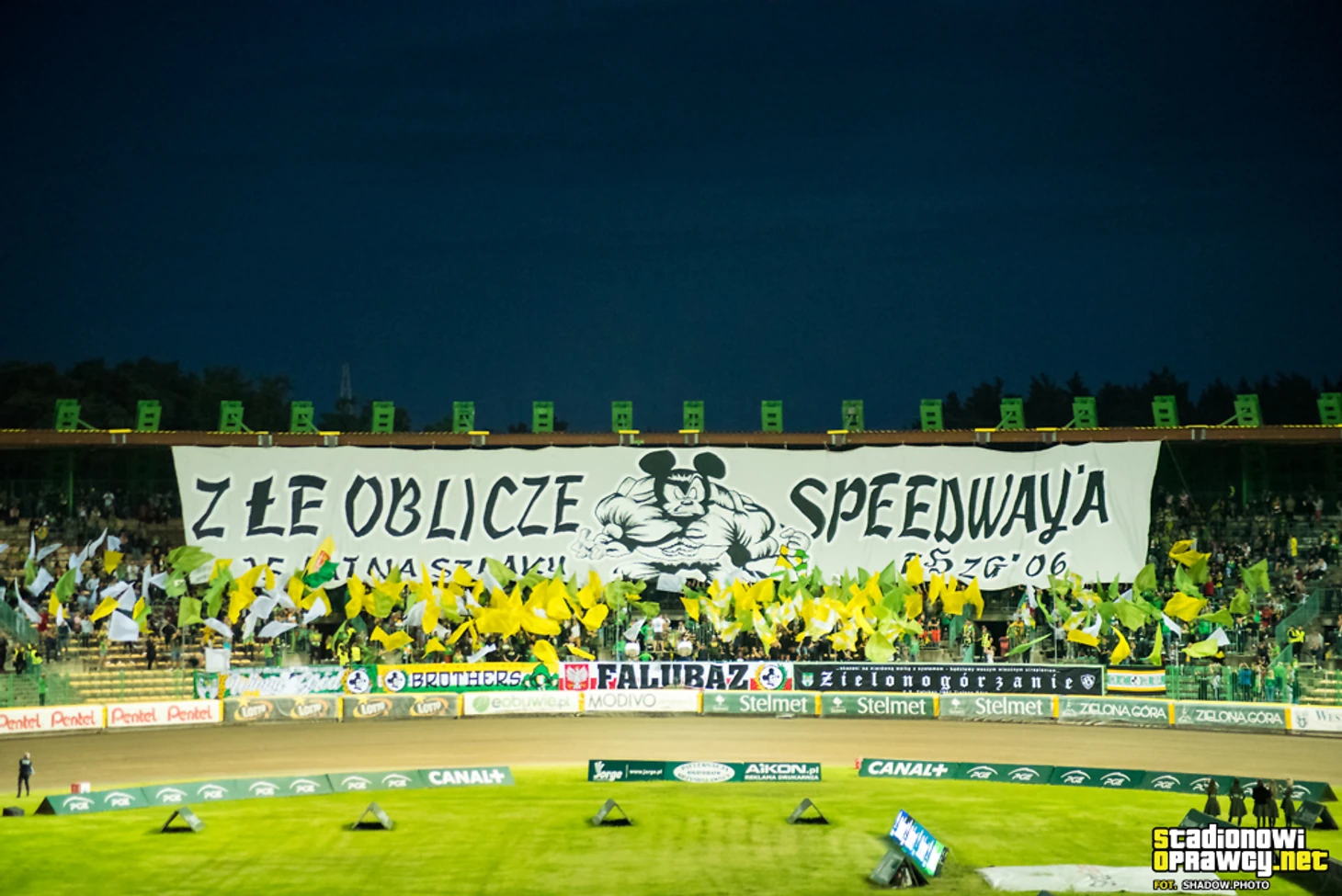 Это была не единственная оправа фанатов «Фалубаза». Вторая состояла из баннера «Плохое обличие спидвея» и флагов в цветах клуба.