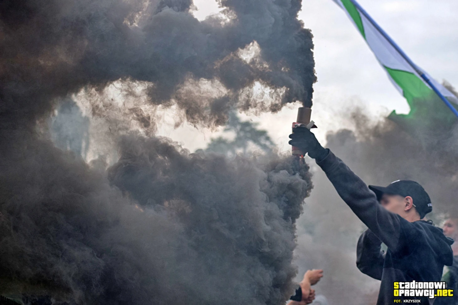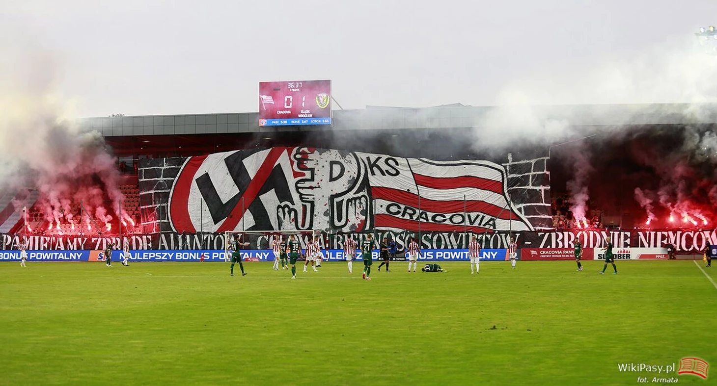 В Кракове прибыл большой десант из Варшавы. На матче они отметились неплохим пирошоу.