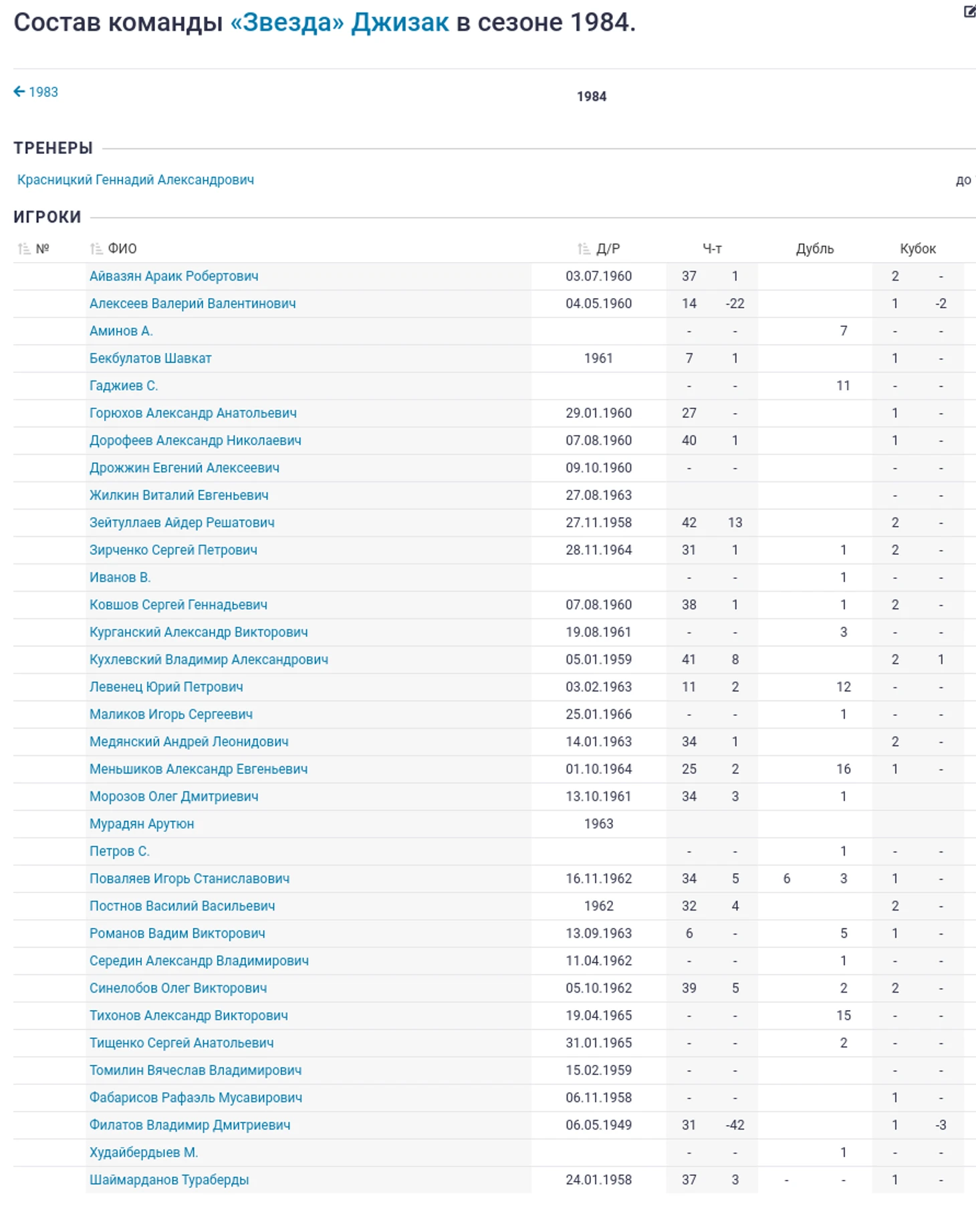 А в 1984 году клуб из маленького города смог занять 13 место в Первой союзной лиге.
