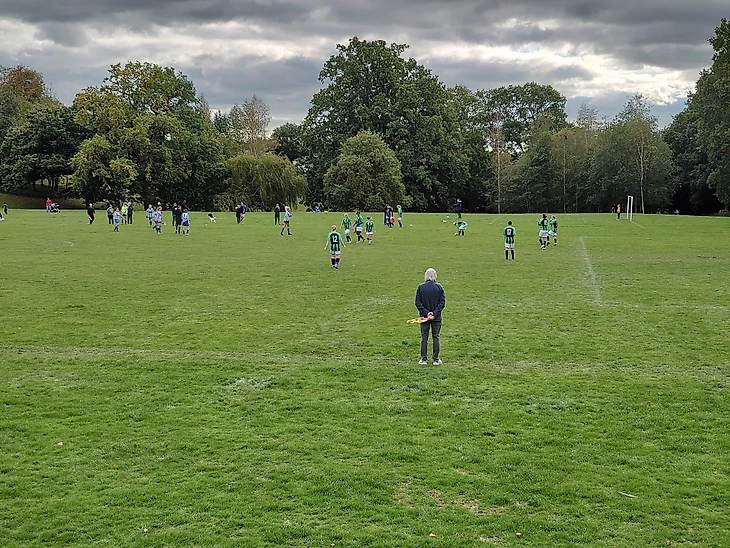 P.S Бонус фото тем кто дочитал до конца. В обычном парке играли женские команды, вот такой колоритный боковой судья был.