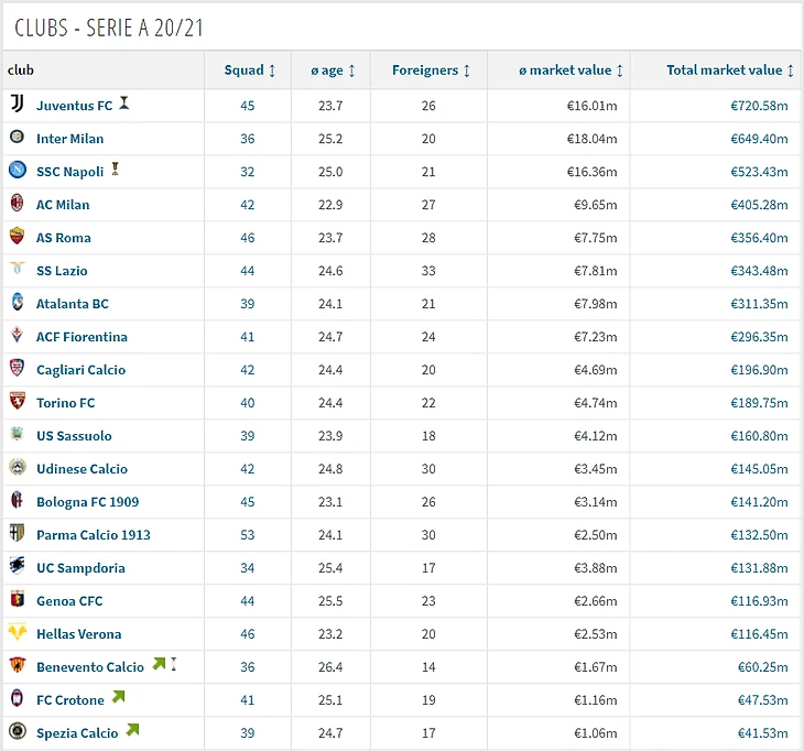 По итогам сезона 2020/21 «Кротоне» вылетел задолго до конца чемпионата; после 37-го тура в Серию В отправился и другой новичок лиги, «Беневенто». «Специя» же в том же самом туре забила четыре мяча в ворота «Торино», одержала победу и обеспечила себе участие в следующем розыгрыше Серии А.