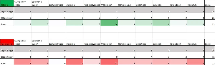 Столько же голов (14/52) «Специя» забила после стандартов. Особенно сильно Итальяно прокачал угловые.