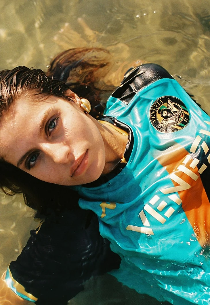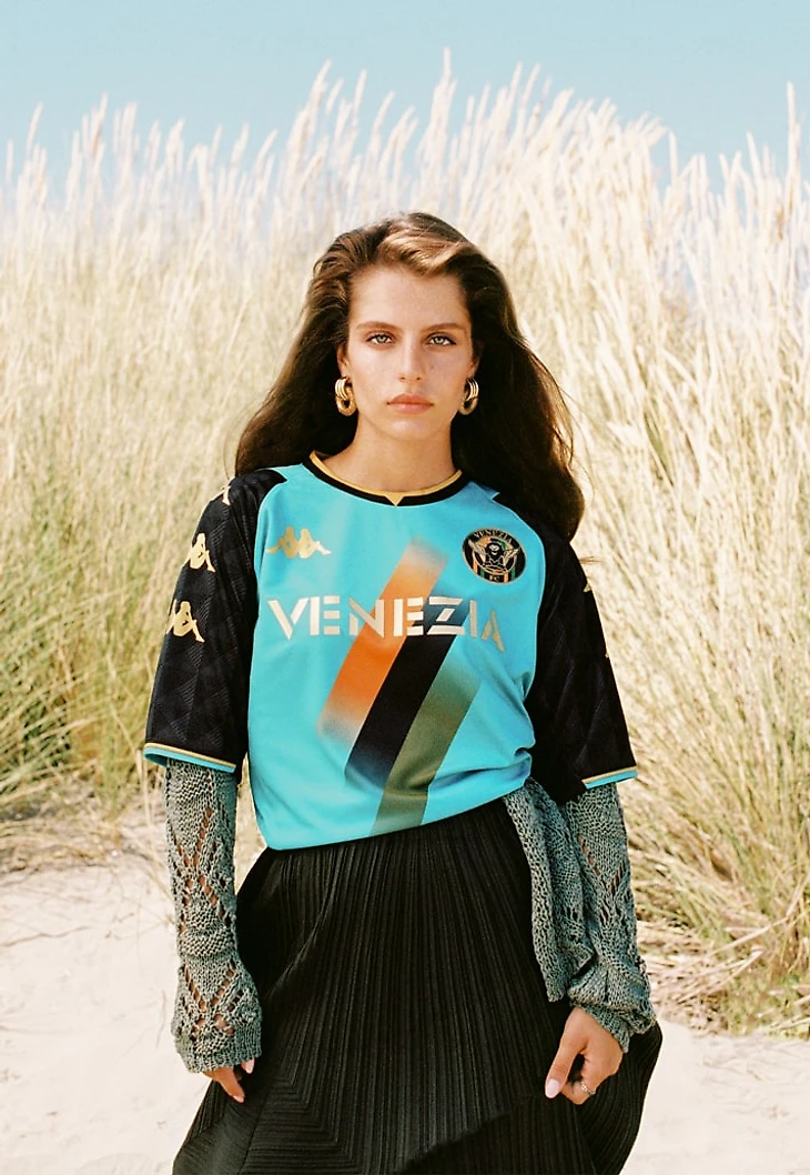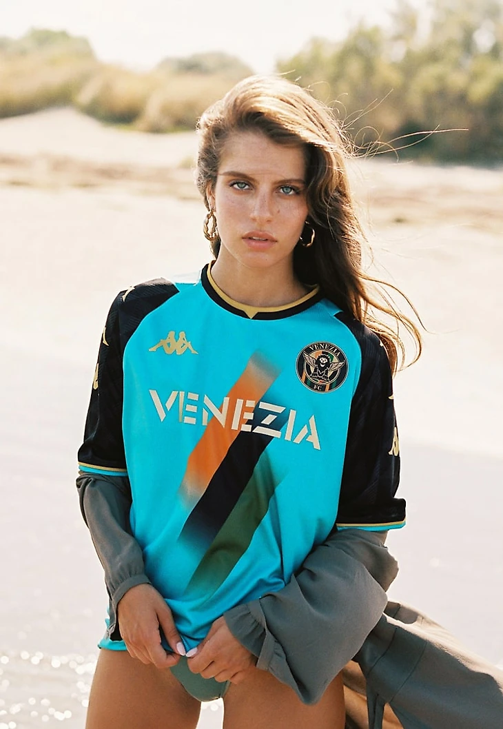"Венеция" и Kappa чуть не сломали интернет, выпустив домашнюю и выездную футболки на сезон 21/22 - первые в их новом партнерстве, и оба они являются серьезными претендентами на лучшую футболку сезона. Теперь они дополняют эту пару еще одним авангардным предложением: сине-зеленое тело со знаменитым arancioneroverde FC Venezia на груди в виде трех исчезающих полос, создающих эффект клубных цветов, плавающих на воде.