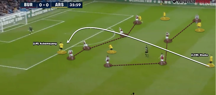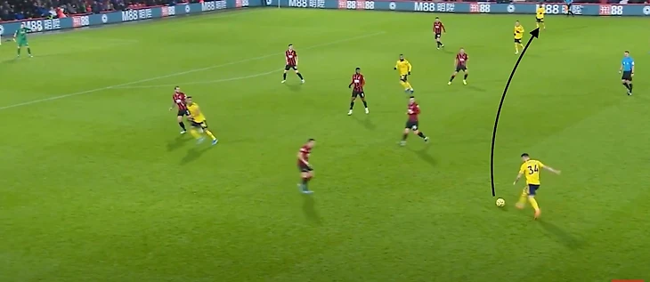 Билдап или розыгрыш через фланг – это один из основополагающих элементов развития атак для многих команд. Цель – оттянуть соперника, чтобы максимально эффективно выйти из-под его прессинга. Кроме того, команды используют его для того, чтобы сделать владение мячом более продолжительным. Для Артеты важно, чтобы команда не пыталась выйти из обороны с помощью прямолинейных длинных передач, он считает, что таким образом мяч хоть и быстрее окажется на чужой половине поля, он так же быстро вернётся обратно. Здесь мы расскажем о том, почему Джака играет для "Арсенала" такую важную роль при переходе из обороны в атаку.