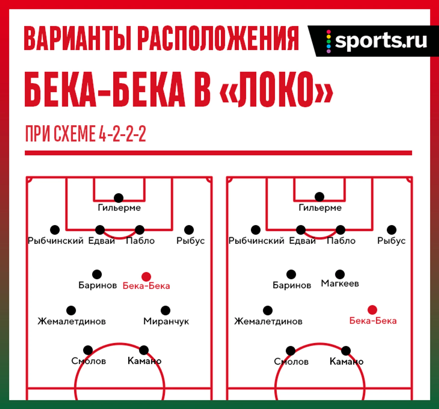 Впрочем, на старте этого сезона Марко Николич предпочитает 4-2-2-2 вместо ромба в центре поля, так что Баринов может составить с Бека-Бека и пару опорных. Не исключено и появление новичка в предпоследней двойке на одном из полуфлангов.